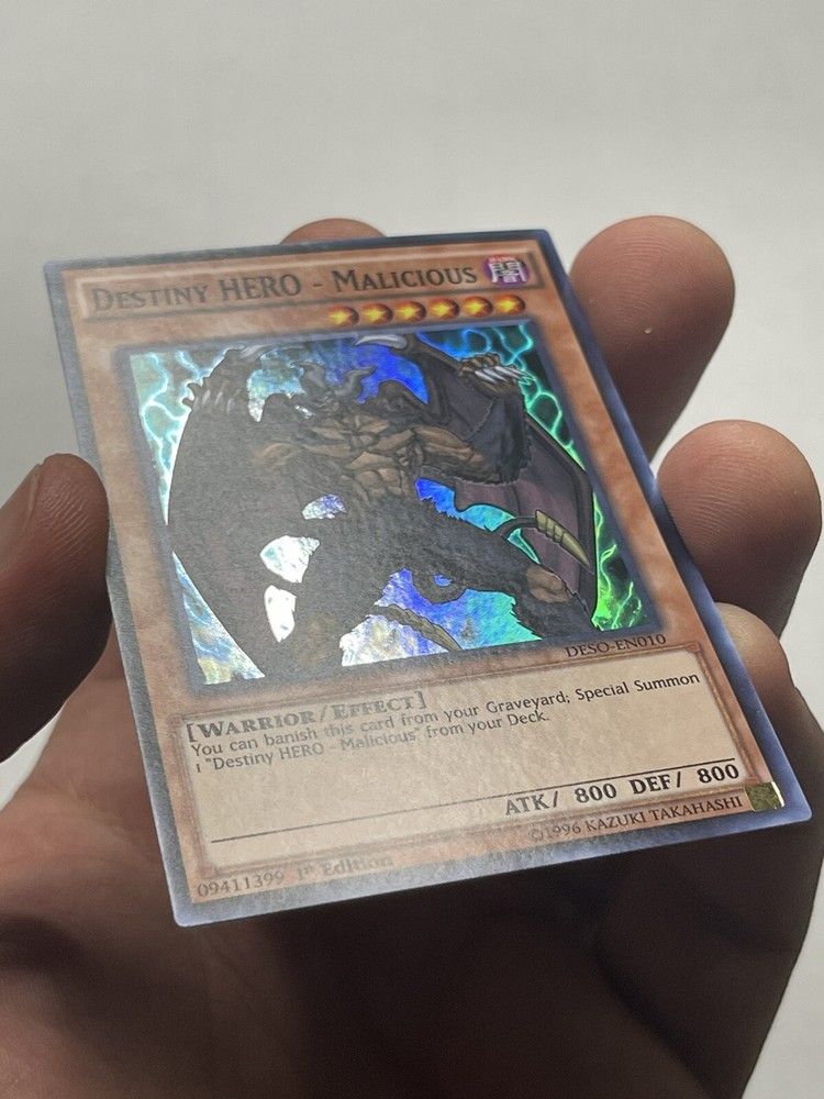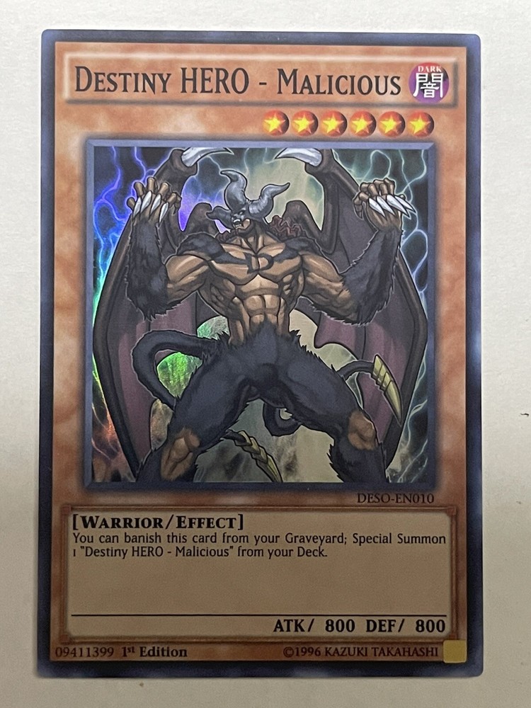 Yugioh! TCG Destiny HERO - Malicious DESO-EN010 NM Super Rare 1st Edition. Will be shipped same day or next business day of purchase, with the exception of orders made late on Friday/Saturday; orders on these days may not be shipped until Monday due to my work schedule. Card(s) pictured is exactly what you’ll be receiving. For all orders, cards will be sleeved, placed in a top loader, and will be shipped in a bubble mailer. Orders over $30.00 CAD will have tracked shipping!
