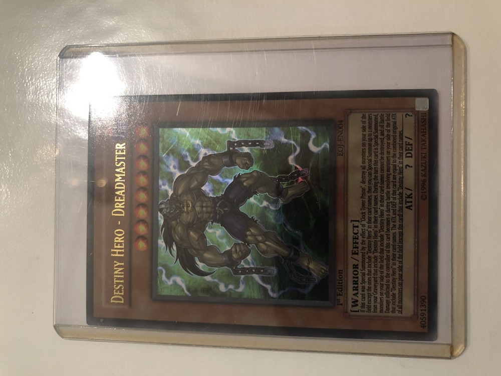 Yugioh Ultra Rare 1st Ed. Destony Hero - Dreadmaster. EOJ-EN004. Mint condition.. Card has been in protective sleeve since it was taken out of pack. It’ll be very well protected when shipped.