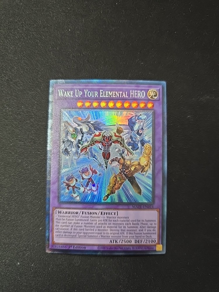 Yugioh! Wake Up Your Elemental HERO - MAZE-EN014 - Collector's Rare 1st Ed (CR). Condition is Ungraded. Shipped with Canada Post Lettermail.