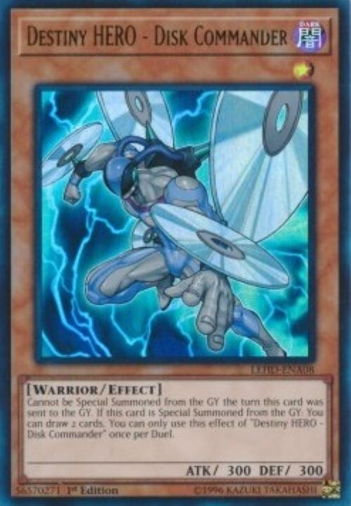Ultra Rare 1st Edition Yugioh Destiny HERO Disk Commander LEHD ENA08 Lightly Played