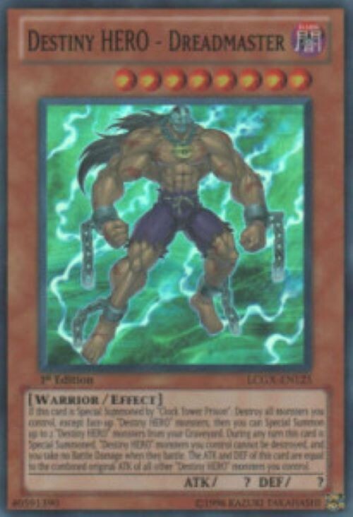 YuGiOh Destiny HERO Dreadmaster Super Rare 1st Edition LCGX EN125 Light Play