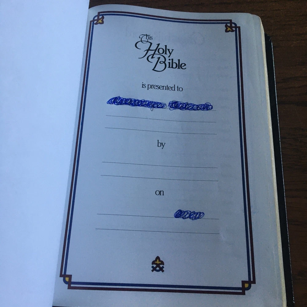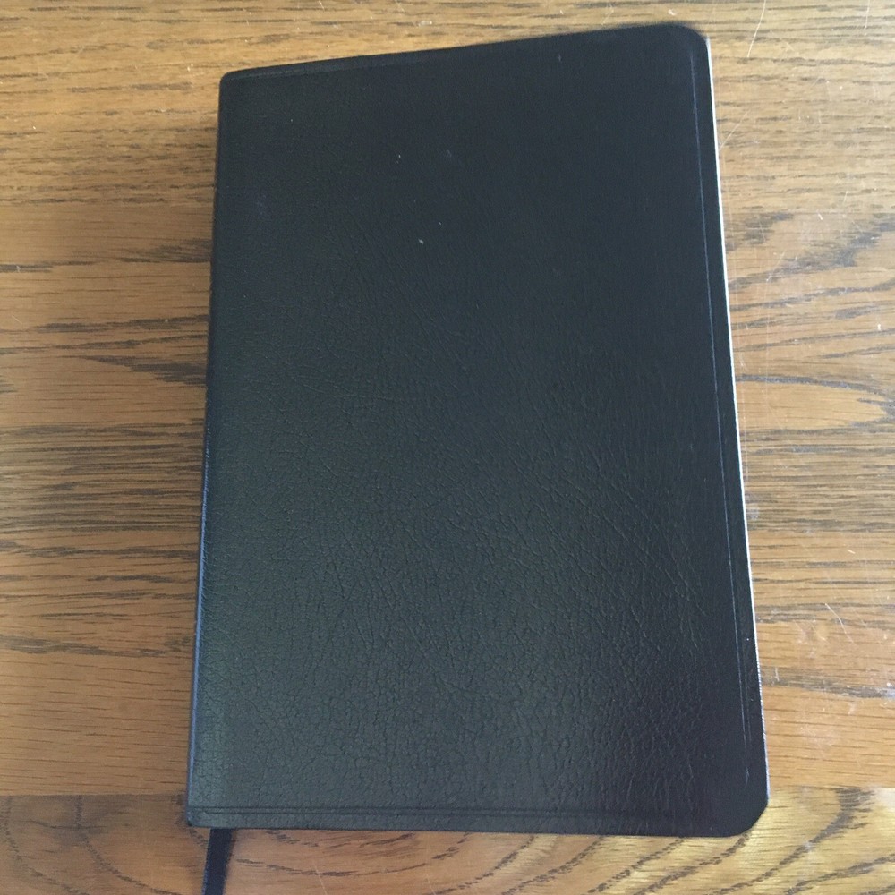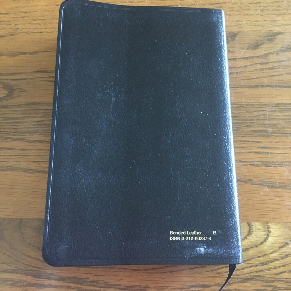 Up for grabs... a beautiful Zondervan Thinline BIBLE NIV in Black Bonded Leather. This Bible has very light wear on the golden gilt edge. There is a name crossed out on the gift page. It measures 8.25" x 5.5" x 1". This item will come to you via USPS Media Mail from a smoke free home. Happy Shopping!