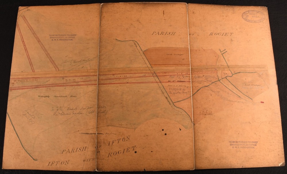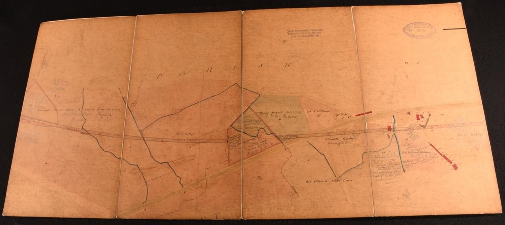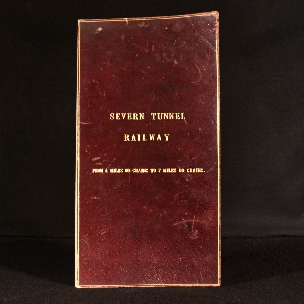 Click here to see our other books! Severn Tunnel Railway: From 4 Miles 60 Chains to 7 Miles 50 Chains Great Western Railway c1890 Not Stated : London 17.5" by 9.5" [14pp] SUMMARY An annotated and hand coloured lithograph map of the Severn Tunnel Railway, belonging to the office of the Great Western Railway's Chief Engineer's Office. Colour Plates,Illustrated,Leather Binding,Original Binding,Very Scarce Overall Condition: Good This book weighs 1 KG when packed UK Postage: £ 3.99 US Postage: £ 22.99 EU Postage : £ 16.99 European Postage: £ 17.99 Asia Postage: £ 22.99 Worldwide Postage: £ 28.99 DESCRIPTION A vanishingly scarce lithograph map of the Severn Tunnel, a tunnel linking South Gloucestershire to Monmouthshire, built under the estuary of the River Severn and reaching a length of 4 miles 628 yards, or 7,012 m. Large portions of the map have been partially hand coloured, with extensive annotations in both pencil and ink. With several stamps reading both 'Great Western Railway Chief Engineers Office, Paddington' and 'To Be Returned to Chief Engineer's Plan Office, G. W. R. Paddington', to both the recto and verso of the map. During the period of the tunnel railway's construction, Chief Engineers of GWR included Joseph Armstrong, William Dean, and George Armstrong. The map is divided into fourteen plates mounted on linen and folding concertina style, bound in morocco boards. The front board reads 'Severn Tunnel Railway: From 54 Miles 60 Chains to 7 Miles 50 Chains'. The majority of the pencil annotations detail the owner's and acreage of the pieces of land the railway runs through, with the local Parishes of different sections of the railway also detailed. Further annotations include measurements and depths, reference numbers for deeds, and details of freeholds. A fascinating and very scarce map with a clear association to GWR, the company responsible for constructing the tunnel, offering insight into the land surrounding the tunnel. CONDITION In the original limp morocco covered boards. Light rubbing to boards. Internally, map mounted on linen and folding concertina style. Map significantly age toned, with handling marks throughout. Large portion of map hand coloured, with extensive pencil and ink annotations. Stamps throughout, to both the recto and verso of the map. Overall Condition: Good GLOSSARY OF TERMS Overall Condition (Dustwrapper condition rating is shown after that for the book itself, where a dustwrapper is present) Fine - Very well preserved copy showing very little wear Very Good Indeed - Only one or two minor faults, really a very attractive copy Very Good - Quite a wide term meaning no major faults but probably several smaller ones often expected given the age of the book, but still a respectable copy Good - Meaning not very good. Some more serious faults as will be described in the condition report under 'condition' Good Only - Meaning one or more faults that could really do with repair Fair - As with good only above but with other faults leaving a compromised copy even after repair Poor - Really bad and possibly seriously incomplete. We only sell books in this condition where their rarity or value makes them attractive none the less. Major defects will be described. GUARANTEE We offer a full money back guarantee on our descriptions. Please ask for details and conditions. We prefer PAYPAL. If you pay via PAYPAL we will post the item off the same or the next working day with the postage you have selected. Please note we cannot accept USD cheques