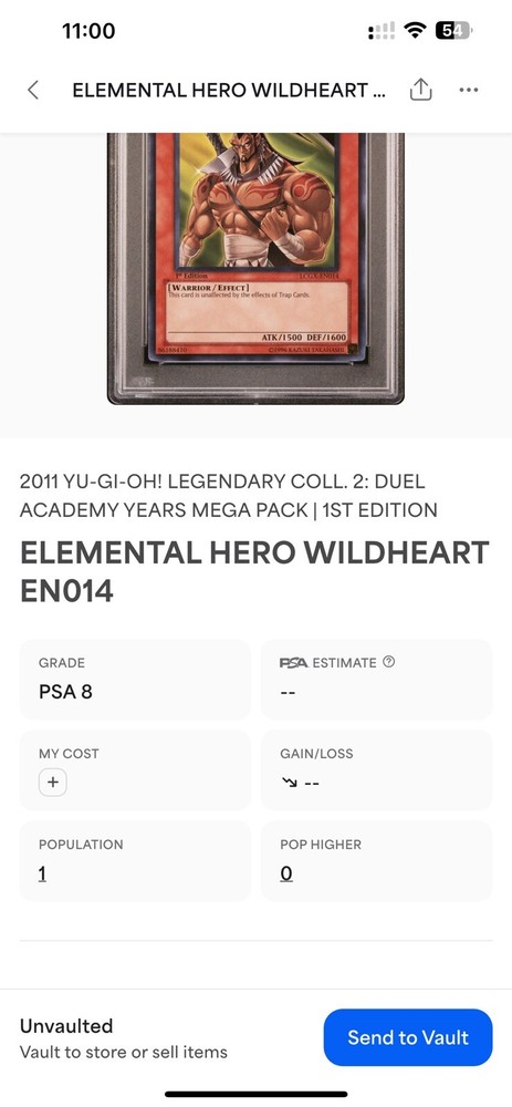 This rare and highly sought-after card is sure to be a great addition to your collection! The Elemental HERO Wildheart card is PSA graded 8 and has a population of only 1. This card is perfect for fans of the Toys & Hobbies and Collectible Card Games categories, and is an excellent choice for anyone looking for a valuable addition to their CCG Individual Cards collection. Don't miss out on the chance to own this incredible card!