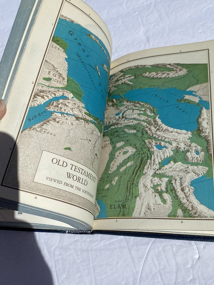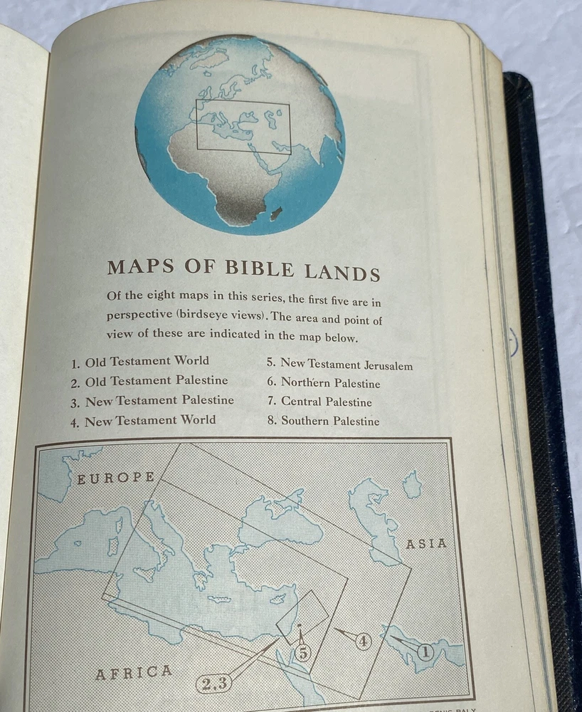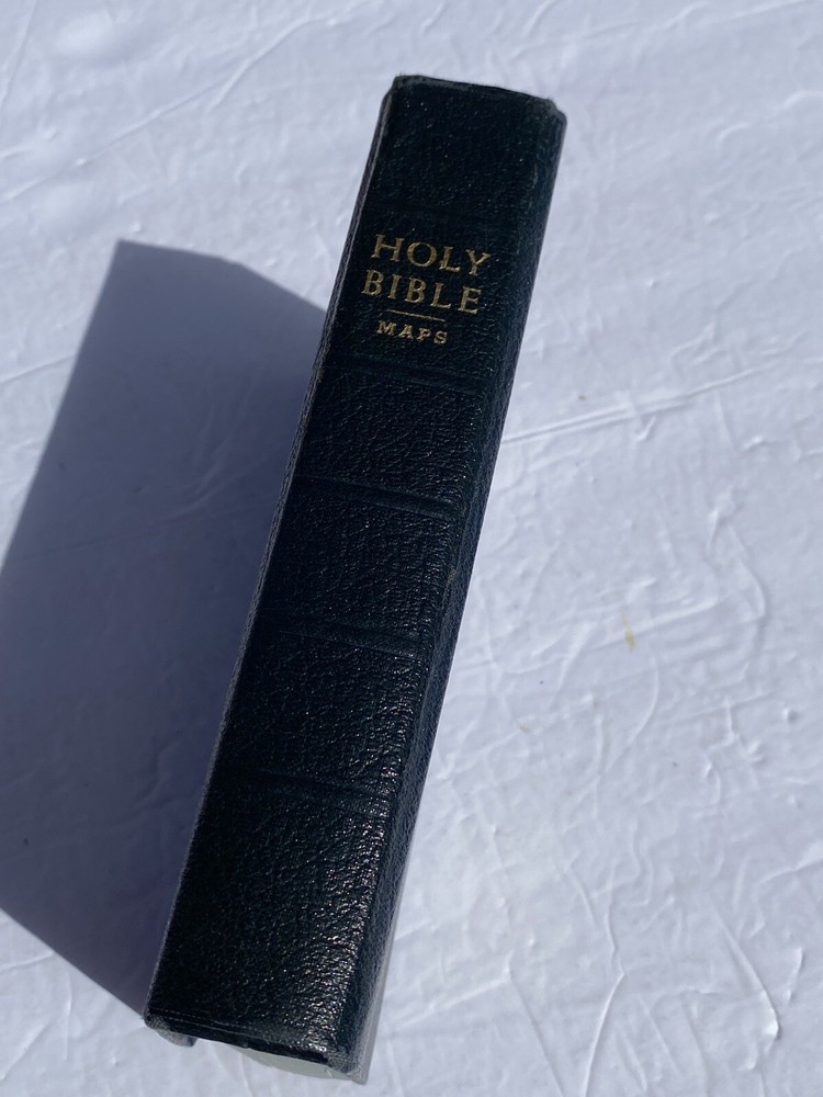 I will combine shipping on multiple media orders. This includes, books, records, tapes, cds, dvds, vhs, reel to reel, 8tracks. holy bible american bible society maps 1966 blue Cover W/ Eagle. Writing on back pages. Small tear inside front cover. Please see photos. Shipped USPS Media Mail.
