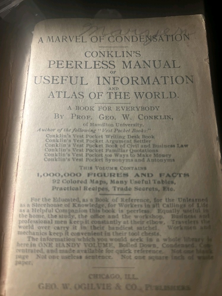 World honking manual of useful info and worlds atlas smoke free home used but in ok shape
