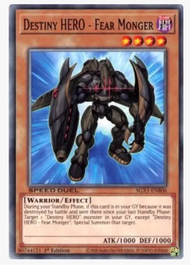 Destiny HERO Fear Monger Common Yugioh Card SGX1-ENB06