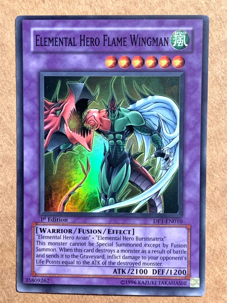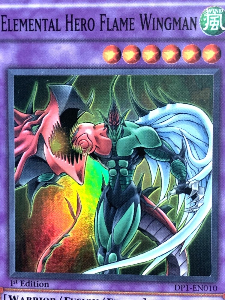 This auction is for (1x) one of the card listed in the title, in the condition listed in the title Elemental Hero Flame Wingman DP1-EN010 1st Edition Super Rare Near Mint If the condition is not specified the items will be in mint/near mint condition See our grading scale for details. FOR TRADING CARDS: CONDITION INFORMATION v Near Mint (NM) – Card will be Mint or very close to it. v Lightly Played (LP) – Card will have edge wear and/or small dents, but no major creases. v Moderately Played/Played (MP/P) – Card will have visible creases, dents and/or edge wear. v Heavily Played (HP) – Card will noticeable damage such as large creases and/or heavy edge wear. v Damaged (Da) - Card will be in very played condition, heavy edgewear, large creases, entire card may be played. SHIPPING INFORMATION Ø Your items will be shipped out within 24 hours of purchase on BUSINESS DAYS ONLY . This excludes Saturdays, Sundays, and US Holidays. Please allow 2-9 business days for USPS to deliver your items Ø Please add all items to your cart prior to checkout to ensure your items are mailed together. Ø VERY IMPORTANT - PLEASE READ!!! Check your shipping address prior to check out to be sure that we are sending it to the correct address!!! Please be sure to include apartment or unit #’s when applicable. · A PLAYMAT will be shipped in a cardboard tube and tracking information will be included. Multiple playmats will be shipped in a large bubble mailer. · SLEEVES will be shipped in a bubble mailer and tracking information will be included. · CARDS will be placed into a top loader and a sleeve during shipping for protection. Purchases over $15 will have tracking information, free of charge. · FULL DECKS will be sleeved, placed in a deck box, and shipped in a bubble mailer. Tracking will be included. WE SHIP INTERNATIONALLY!!! International Buyers - Please Note: Import duties, taxes, and charges are not included in the item price or shipping cost. These charges are the buyer's responsibility. Please check with your country's customs office to determine what these additional costs will be prior to bidding or buying. · Excludes South America – NO EXCEPTIONS · We will not claim less than the value of what you purchase, so please do not ask. · We ship via the Global Shipping program. Shipping charges are created by eBay and received by their third party shipping department, therefore we do not have any control over the prices. o Includes tracking information (even outside the U.S.). o Insurance for package is also included. FEEL SAFE WHEN SHOPPING WITH US THANK YOU FOR SHOPPING WITH US, PLEASE CHECK OUT OUR OTHER ITEMS FOR MORE GREAT DEALS!