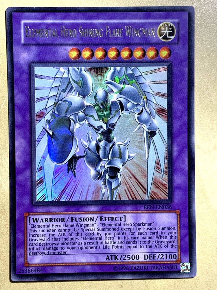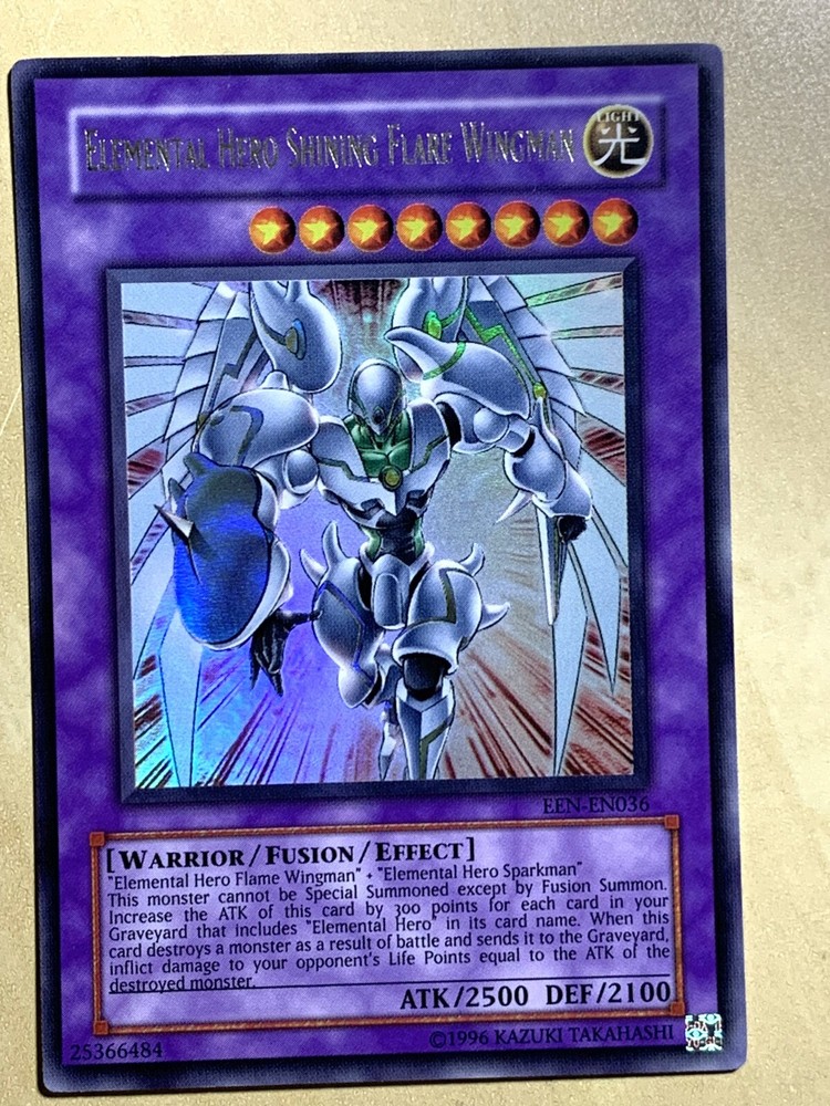 This auction is for (1x) one of the card listed in the title, in the condition listed in the title Elemental Hero Shining Flare Wingman EEN-EN036 Unlimited Edition Ultra Rare Near Mint Old School Vintage North America FOR TRADING CARDS: CONDITION INFORMATION v Near Mint (NM) – Card will be Mint or very close to it. v Lightly Played (LP) – Card will have edge wear and/or small dents, but no major creases. v Moderately Played/Played (MP/P) – Card will have visible creases, dents and/or edge wear. v Heavily Played (HP) – Card will noticeable damage such as large creases and/or heavy edge wear. v Damaged (Da) - Card will be in very played condition, heavy edgewear, large creases, entire card may be played. SHIPPING INFORMATION Ø Your items will be shipped out within 24 hours of purchase on BUSINESS DAYS ONLY . This excludes Saturdays, Sundays, and US Holidays. Please allow 2-9 business days for USPS to deliver your items Ø Please add all items to your cart prior to checkout to ensure your items are mailed together. Ø VERY IMPORTANT - PLEASE READ!!! Check your shipping address prior to check out to be sure that we are sending it to the correct address!!! Please be sure to include apartment or unit #’s when applicable. · A PLAYMAT will be shipped in a cardboard tube and tracking information will be included. Multiple playmats will be shipped in a large bubble mailer. · SLEEVES will be shipped in a bubble mailer and tracking information will be included. · CARDS will be placed into a top loader and a sleeve during shipping for protection. Purchases over $15 will have tracking information, free of charge. · FULL DECKS will be sleeved, placed in a deck box, and shipped in a bubble mailer. Tracking will be included. WE SHIP INTERNATIONALLY!!! International Buyers - Please Note: Import duties, taxes, and charges are not included in the item price or shipping cost. These charges are the buyer's responsibility. Please check with your country's customs office to determine what these additional costs will be prior to bidding or buying. · Excludes South America – NO EXCEPTIONS · We will not claim less than the value of what you purchase, so please do not ask. · We ship via the Global Shipping program. Shipping charges are created by eBay and received by their third party shipping department, therefore we do not have any control over the prices. o Includes tracking information (even outside the U.S.). o Insurance for package is also included. FEEL SAFE WHEN SHOPPING WITH US THANK YOU FOR SHOPPING WITH US, PLEASE CHECK OUT OUR OTHER ITEMS FOR MORE GREAT DEALS!