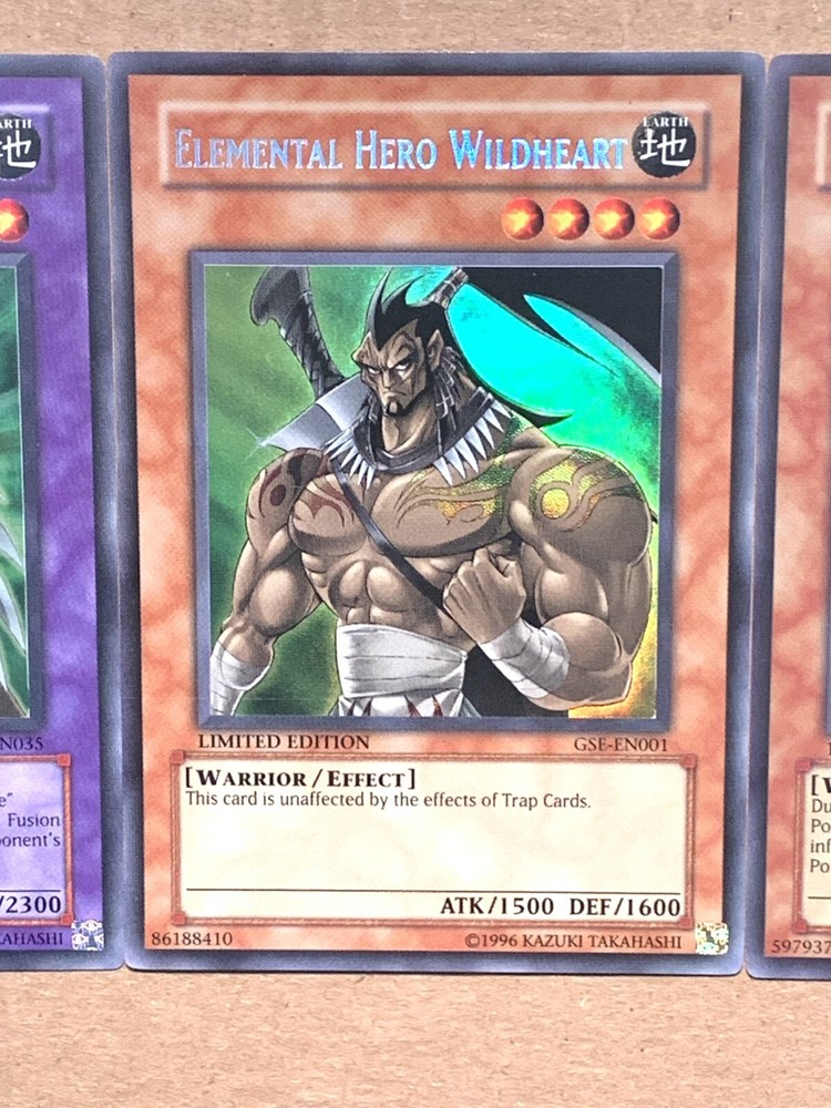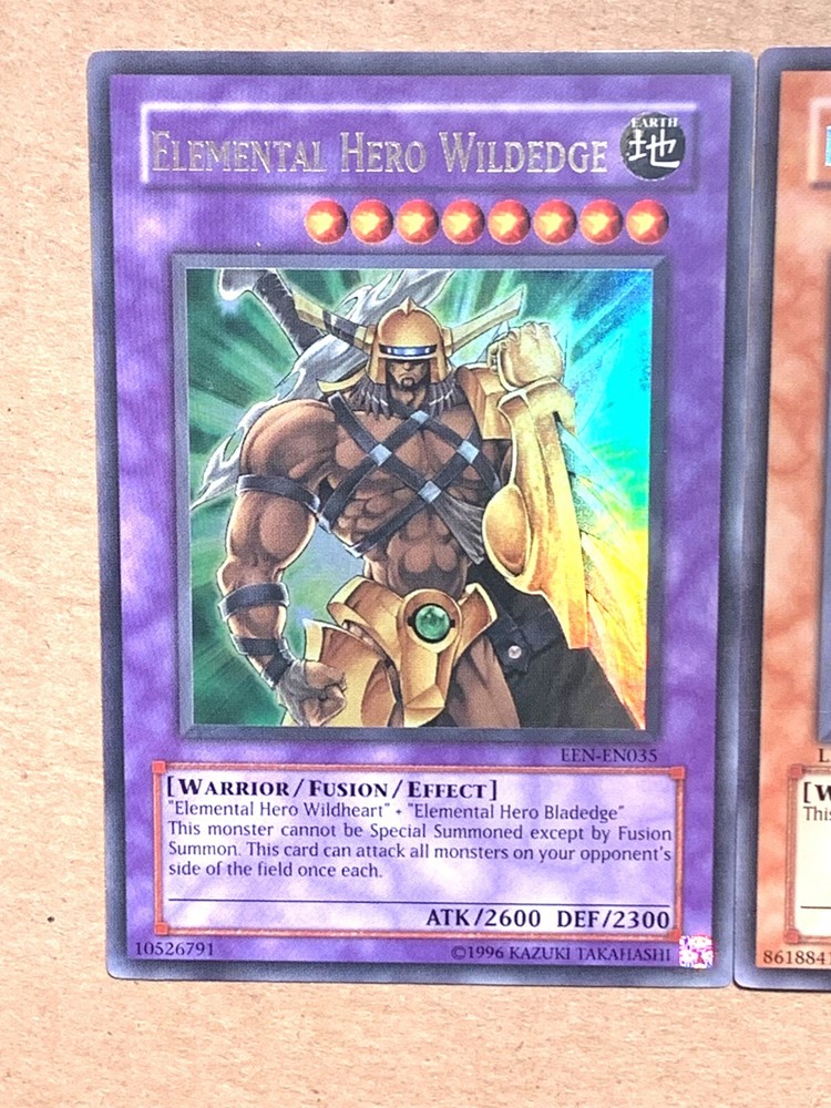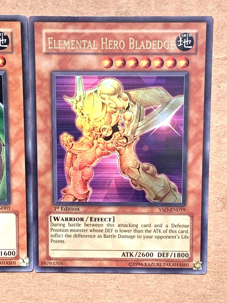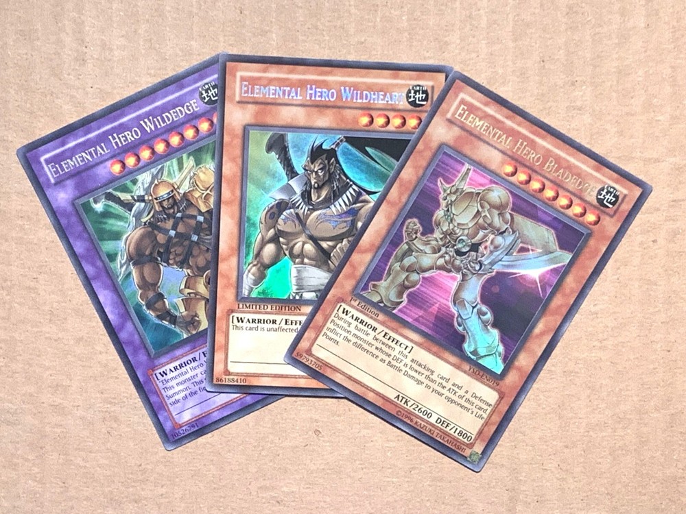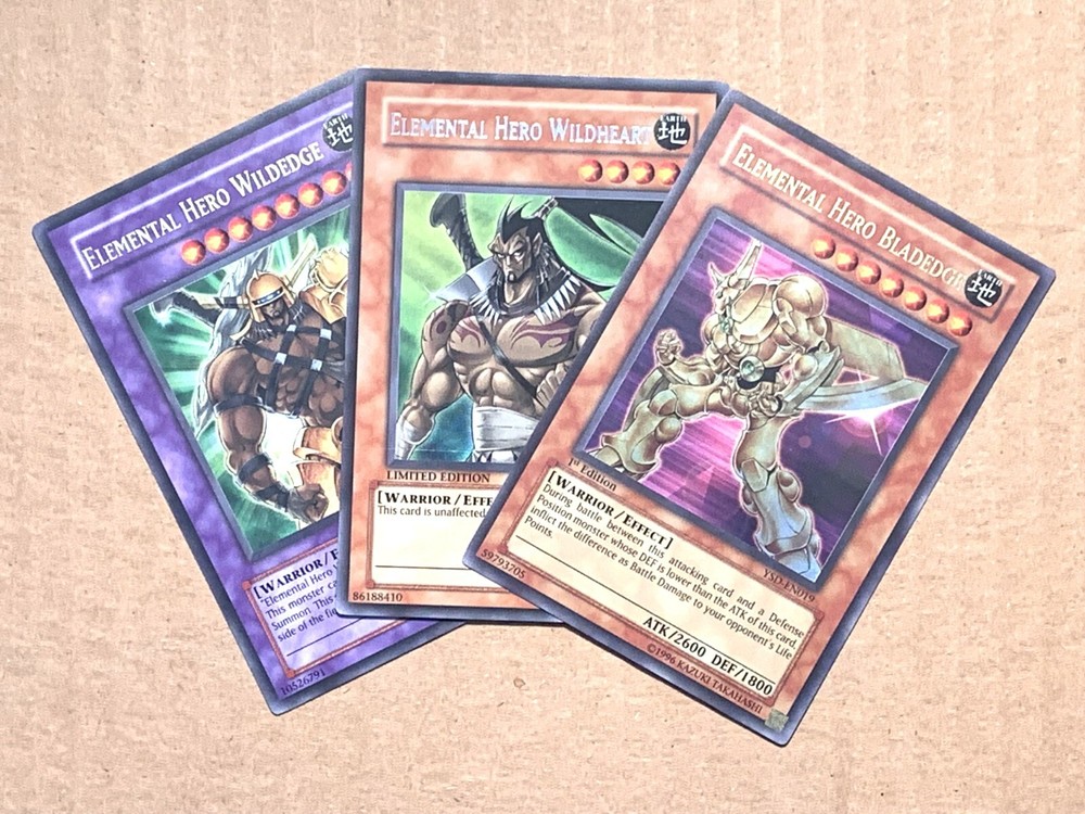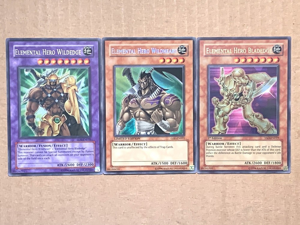This auction is for (1x) one of the set listed in the title, in the condition listed in the title Elemental Hero Wildedge EEN-EN035 Elemental Hero Wildheart GSE-EN001 Elemental Hero Bladedge YSD-EN019 Ultra Rare Near Mint FOR TRADING CARDS: CONDITION INFORMATION v Near Mint (NM) – Card will be Mint or very close to it. v Lightly Played (LP) – Card will have edge wear and/or small dents, but no major creases. v Moderately Played/Played (MP/P) – Card will have visible creases, dents and/or edge wear. v Heavily Played (HP) – Card will noticeable damage such as large creases and/or heavy edge wear. v Damaged (Da) - Card will be in very played condition, heavy edgewear, large creases, entire card may be played. SHIPPING INFORMATION Ø Your items will be shipped out within 24 hours of purchase on BUSINESS DAYS ONLY . This excludes Saturdays, Sundays, and US Holidays. Please allow 2-9 business days for USPS to deliver your items Ø Please add all items to your cart prior to checkout to ensure your items are mailed together. Ø VERY IMPORTANT - PLEASE READ!!! Check your shipping address prior to check out to be sure that we are sending it to the correct address!!! Please be sure to include apartment or unit #’s when applicable. · A PLAYMAT will be shipped in a cardboard tube and tracking information will be included. Multiple playmats will be shipped in a large bubble mailer. · SLEEVES will be shipped in a bubble mailer and tracking information will be included. · CARDS will be placed into a top loader and a sleeve during shipping for protection. Purchases over $15 will have tracking information, free of charge. · FULL DECKS will be sleeved, placed in a deck box, and shipped in a bubble mailer. Tracking will be included. WE SHIP INTERNATIONALLY!!! International Buyers - Please Note: Import duties, taxes, and charges are not included in the item price or shipping cost. These charges are the buyer's responsibility. Please check with your country's customs office to determine what these additional costs will be prior to bidding or buying. · Excludes South America – NO EXCEPTIONS · We will not claim less than the value of what you purchase, so please do not ask. · We ship via the Global Shipping program. Shipping charges are created by eBay and received by their third party shipping department, therefore we do not have any control over the prices. o Includes tracking information (even outside the U.S.). o Insurance for package is also included. FEEL SAFE WHEN SHOPPING WITH US THANK YOU FOR SHOPPING WITH US, PLEASE CHECK OUT OUR OTHER ITEMS FOR MORE GREAT DEALS!
