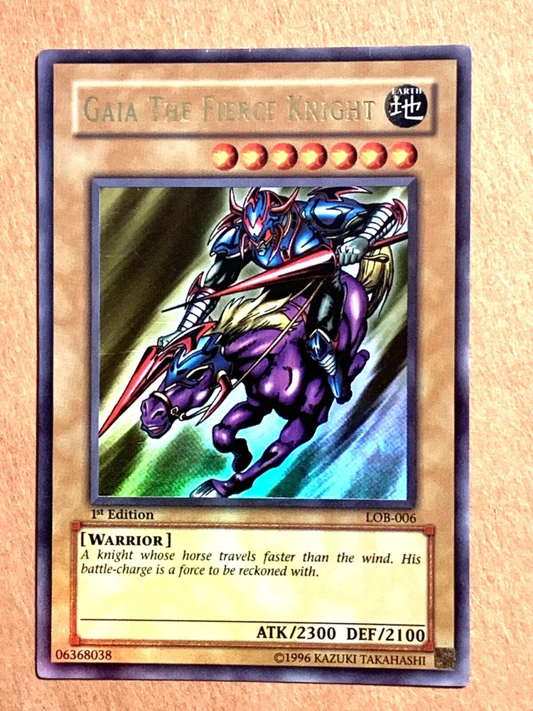 This auction is for (1x) one of the card listed in the title, in the condition listed in the title Gaia The Fierce Knight LOB-006 Ultra Rare 1ST EDITION Asian English 1st Edition Ultra Rare Near Mint Old School Vintage North America FOR TRADING CARDS: CONDITION INFORMATION v Near Mint (NM) – Card will be Mint or very close to it. v Lightly Played (LP) – Card will have edge wear and/or small dents, but no major creases. v Moderately Played/Played (MP/P) – Card will have visible creases, dents and/or edge wear. v Heavily Played (HP) – Card will noticeable damage such as large creases and/or heavy edge wear. v Damaged (Da) - Card will be in very played condition, heavy edgewear, large creases, entire card may be played. SHIPPING INFORMATION Ø Your items will be shipped out within 24 hours of purchase on BUSINESS DAYS ONLY . This excludes Saturdays, Sundays, and US Holidays. Please allow 2-9 business days for USPS to deliver your items Ø Please add all items to your cart prior to checkout to ensure your items are mailed together. Ø VERY IMPORTANT - PLEASE READ!!! Check your shipping address prior to check out to be sure that we are sending it to the correct address!!! Please be sure to include apartment or unit #’s when applicable. · A PLAYMAT will be shipped in a cardboard tube and tracking information will be included. Multiple playmats will be shipped in a large bubble mailer. · SLEEVES will be shipped in a bubble mailer and tracking information will be included. · CARDS will be placed into a top loader and a sleeve during shipping for protection. Purchases over $15 will have tracking information, free of charge. · FULL DECKS will be sleeved, placed in a deck box, and shipped in a bubble mailer. Tracking will be included. WE SHIP INTERNATIONALLY!!! International Buyers - Please Note: Import duties, taxes, and charges are not included in the item price or shipping cost. These charges are the buyer's responsibility. Please check with your country's customs office to determine what these additional costs will be prior to bidding or buying. · Excludes South America – NO EXCEPTIONS · We will not claim less than the value of what you purchase, so please do not ask. · We ship via the Global Shipping program. Shipping charges are created by eBay and received by their third party shipping department, therefore we do not have any control over the prices. o Includes tracking information (even outside the U.S.). o Insurance for package is also included. FEEL SAFE WHEN SHOPPING WITH US THANK YOU FOR SHOPPING WITH US, PLEASE CHECK OUT OUR OTHER ITEMS FOR MORE GREAT DEALS!